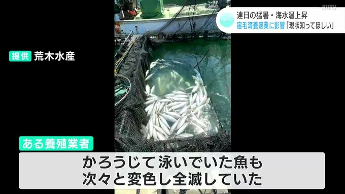 「持って帰ってきた魚も死んだし、沖の深い所の魚も下まで水温が高いので死ぬ感じ。多い時は1000匹ぐらい死ぬ。(Q.かなりの打撃ですよね)そうですね。水温だけはどうしようもない。堪えるしかないですね」