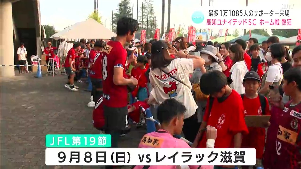 サッカーJFL首位の高知ユナイテッドSCは2日、ホームでヴェルスパ大分と対戦しました。会場を訪れたサポーターは、過去最高、1万1085人。かつてない数の声援が送られ会場は熱気に包まれました。