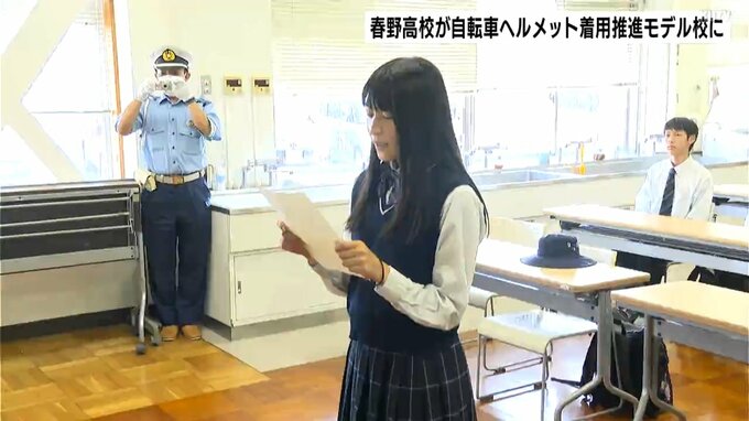 「自転車ヘルメット着用推進モデル校」に指定されたのは春野高校です。
