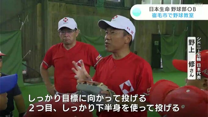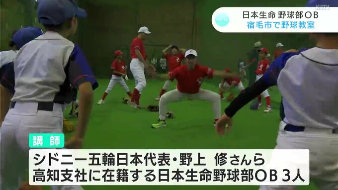 社会人野球の名門、日本生命野球部のOBが22日、高知県宿毛市で野球教室を開き、参加した子ども達に野球の基礎や楽しさを伝えました。