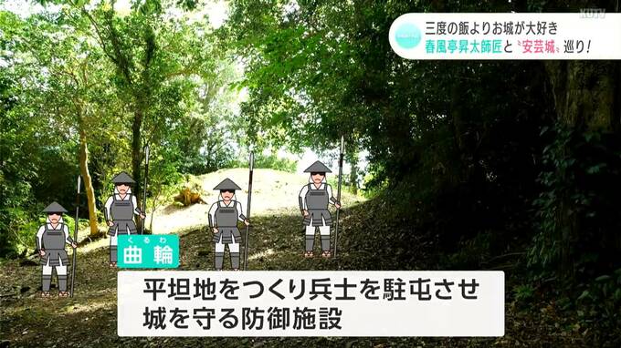 本丸に向かう途中にこのような平坦地を作り、兵士を駐屯させることで城を守っていました。中でも、昇太師匠や中井名誉教授が注目したのは…。