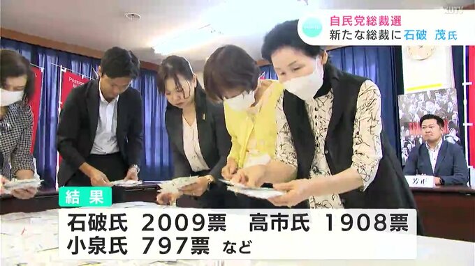 高知県高知市の自民党高知県連でも午前中に開票作業が行われました。高知県内の党員、党友は8174人。投票総数は5316票で、投票率は65.04%でした。石破氏が2009票、高市氏が1908票、小泉氏が797票という結果で、決選投票での高知の1票は、石破氏となりました。