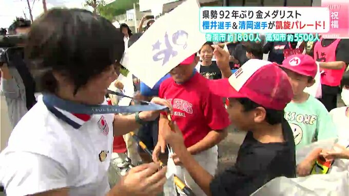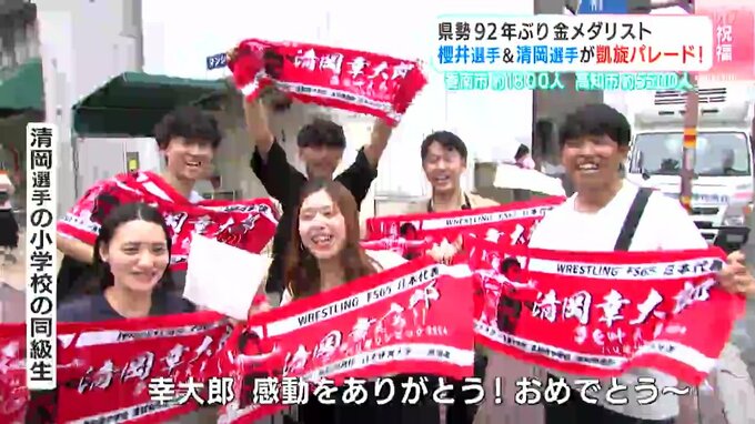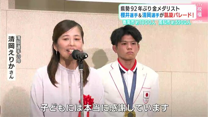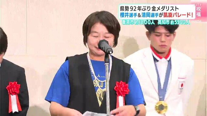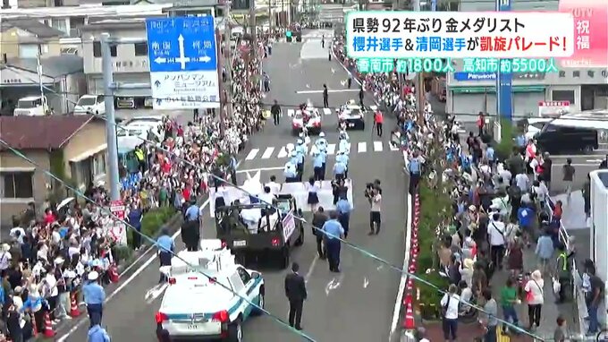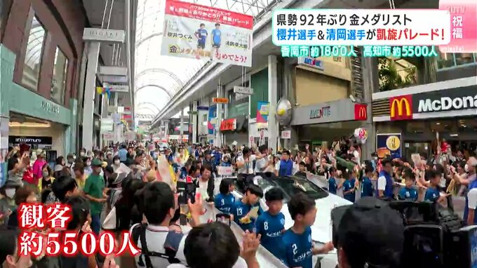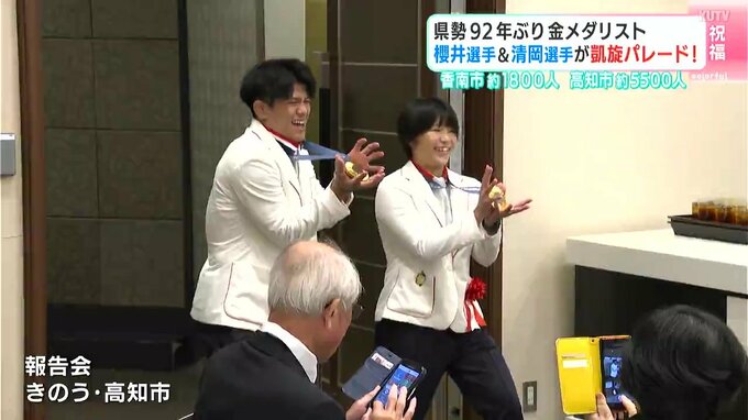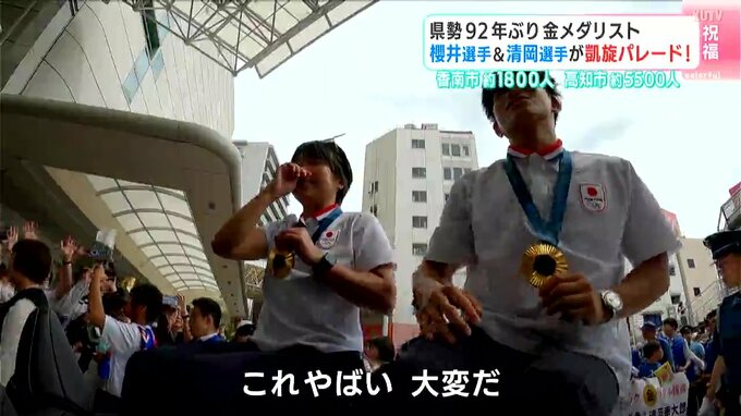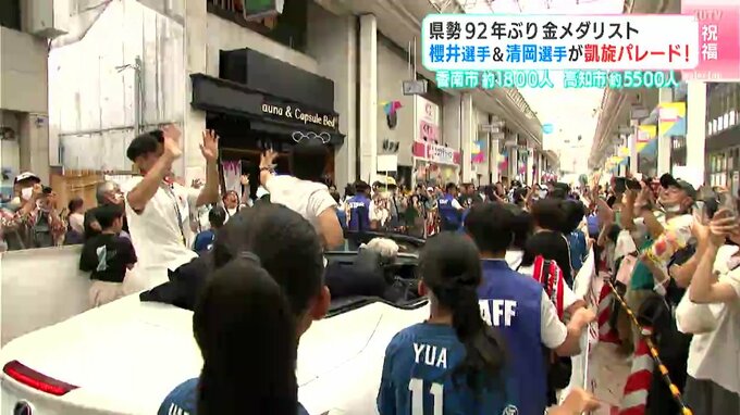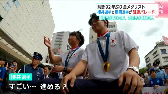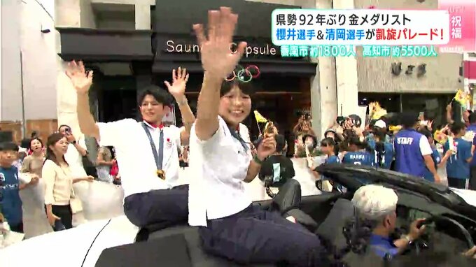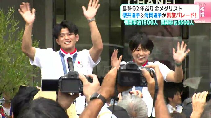 高知県勢として92年ぶりにオリンピックで金メダルを獲得した櫻井つぐみ選手と清岡幸大郎選手。今年の夏、高知を盛り上げた幼なじみ2人を祝う凱旋パレードが29日に行われ、大勢の人が新たなスターを祝福しました。