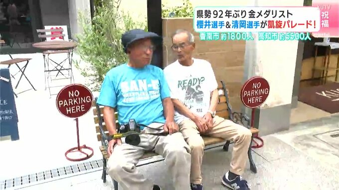 凱旋パレードは高知市でも!櫻井選手とともに金メダルを獲得した、高知市出身で幼なじみの清岡幸大郎選手も一緒です。