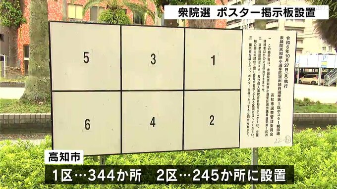 高知県選挙管理委員会によりますと、2021年の衆院選と2022年の参院選では県内4900か所あまりにポスター掲示板が設置され、今回も同様の数になるということです。高知市では1区で344か所、2区で245か所に設置され、14日までに設置が終わる予定です。