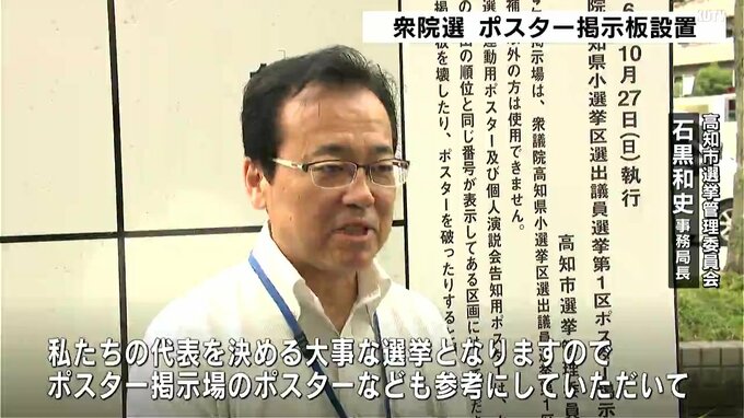 ポスター掲示板の設置作業は各市町村の選挙管理委員会が進めていて、高知県高知市では8日朝、高知市の選挙管理委員会の職員が立ち会う中、委託を受けた事業者が、縦90センチ横180センチの掲示板を設置しました。