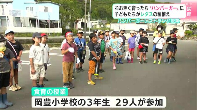 高知県南国市のハンバーガーレストランが地元の子どもたちに食育の授業を行いました。店の前の畑に子どもたちが植えたのは、レタスの種。大きく育ったら、ハンバーガーにして味わいます。