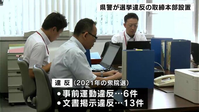 県警によりますと、前回、2021年の衆院選では事前運動違反で6件、文書掲示違反で13件の警告を出しています。今回はこれまでに警告はないということですが、買収行為や選挙運動の妨害など特に悪質な違反については投票日前でも摘発するとしています。