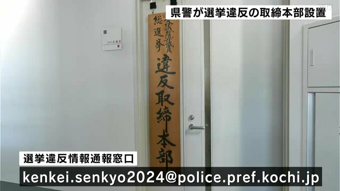衆議院議員選挙にむけて高知県警は10日、選挙違反取締本部を設置しました。悪質な違反については投票日前でも摘発するとしています。