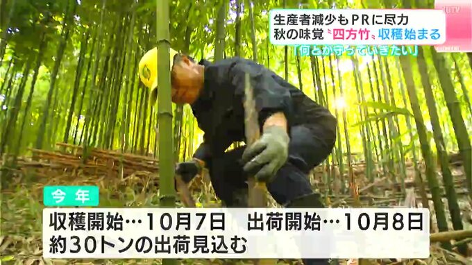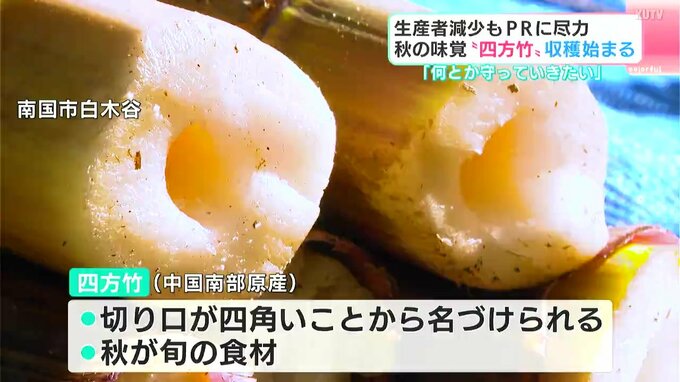 全国でも珍しい秋のタケノコ四方竹(しほうちく)の収穫と出荷が高知県南国市で始まりました。