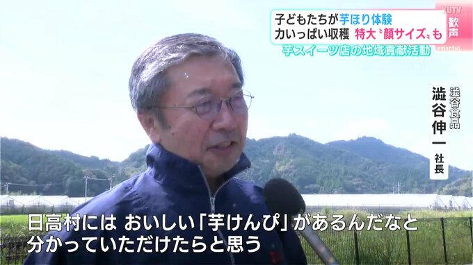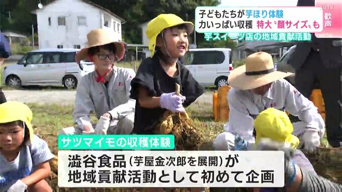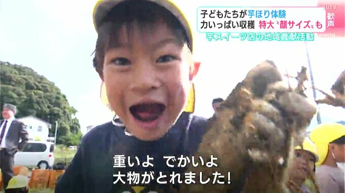 高知県日高村で行われたのは、日下保育園の年長の園児によるサツマイモの収穫体験です。芋スイーツの販売店「芋屋金次郎」を展開する澁谷食品が、地域貢献活動として初めて企画しました。