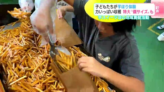 この後子どもたちは、「芋けんぴ」の工場に移動し、工程を見学。試食をしたり、袋いっぱいに芋けんぴを詰めたりして、地元で作られているお菓子のおいしさを感じていました。