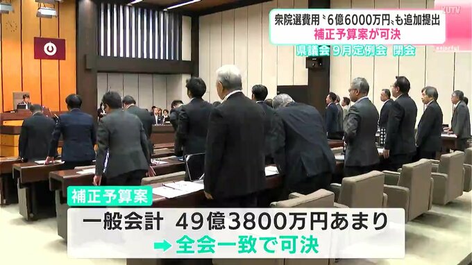 高知県議会9月定例会は49億円あまりの補正予算案が全会一致で可決され、閉会しました。また、10月実施される衆院選にかかる経費、およそ6億6000万円についても予算案として可決されました。