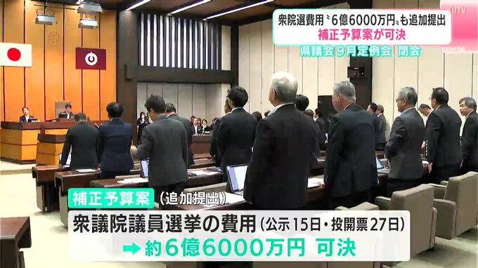 また本会議では15日公示、27日投開票の衆議院議員選挙にかかる費用、およそ6億6000万円が追加の補正予算案として提出され、こちらも可決されました。