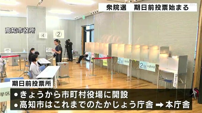 期日前投票所は今後、ショッピングモールや量販店、大学なども含め、高知県内102か所に設けられます。期日前投票は、投開票日前日の10月26日(土)までです。