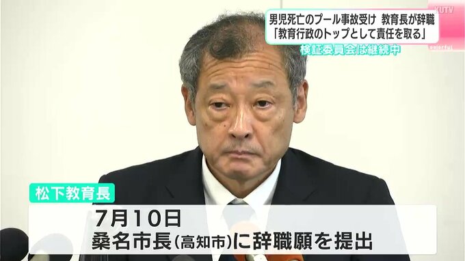 2024年7月、設備の故障に伴い水深の深い中学校のプールで行われていた小学校の水泳の授業で、4年生の男子児童が死亡した事故を受けて高知市の松下整教育長が16日付けで辞職しました。