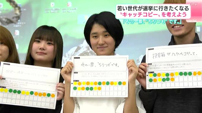 「その一票、“ちりつも”です。」若者が選挙にいきたくなる“キャッチコピー”を考えよう 2024年10月16日(水) 19:15 国内 暮らし・マネー 27日の投開票を前に、若い世代に投票に行ってもらおうと、高知市の専門学校生がキャッチコピーを考えました。キャッチコピーを考えたのは、高知市の龍馬デザイン・ビューティ専門学校の生徒64人です。高知県選挙管…