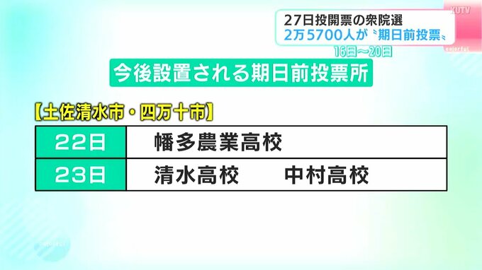 今後は量販店や学校にも投票所が設置される予定で高知市では22日からイオンモール高知、イオン高知旭町店、フジグラン高知、サンシャインヴィアンに。24日には高知大学に。