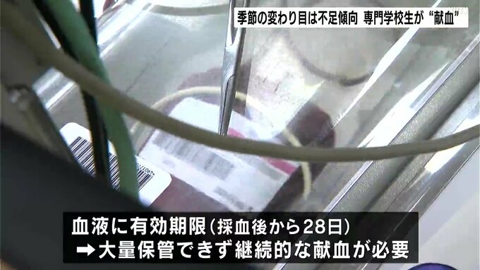 献血は体調が万全でなければ行えず、季節の変わり目は、風邪などが流行し、血液が不足する傾向にあります。また、血液には有効期限があり、大量保管ができないため継続的な献血が必要となってきます。