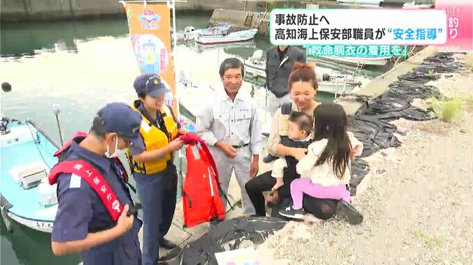 10月からのこの時期は、釣りのシーズンを迎え事故が増加する傾向にあります。今10月21日には土佐市の宇佐港内で漁船が転覆し、乗っていた男性が亡くなる事故がありました。男性は救命胴衣をつけていなかったということです。31日は高知海上保安部の職員が釣り人や漁船に乗る人たちに安全指導を行い、救命胴衣の着用を呼びかけるとともに、装備や使い方などを詳しく教えていました。