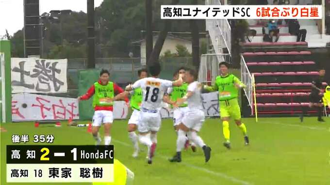 サッカーJFL第27節、高知ユナイテッドSCはアウェーでHonda FCを2対1で破り、6試合ぶりの白星を挙げました。勝ち点は52となり、2位をキープしています。