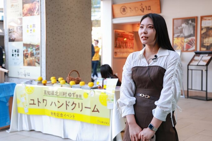 日本有数の「ユズの産地」でもある北川村の子どもたちが、東京の化粧品メーカーなどとともに開発したハンドクリームを東京・銀座にある高知県アンテナショップでPRしました。
