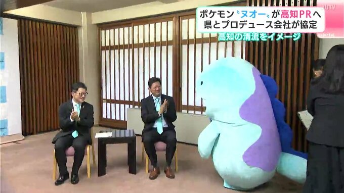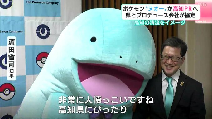 高知県と協定を結んだのはゲームキャラクター「ポケモン」をプロデュースする株式会社ポケモンです。全国の自治体と観光・地方創生を盛り上げる協定を締結していて、高知県は12件目。「高知だいすきポケモン」として川辺に生息するという「ヌオー」が選ばれま した。四万十川や仁淀川といった高知の清流のイメージに合うことなどから選ばれたということです。