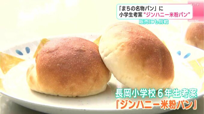 こちらが長岡小学校の6年生たちが考案した「ジンハニー米粉パン」です。