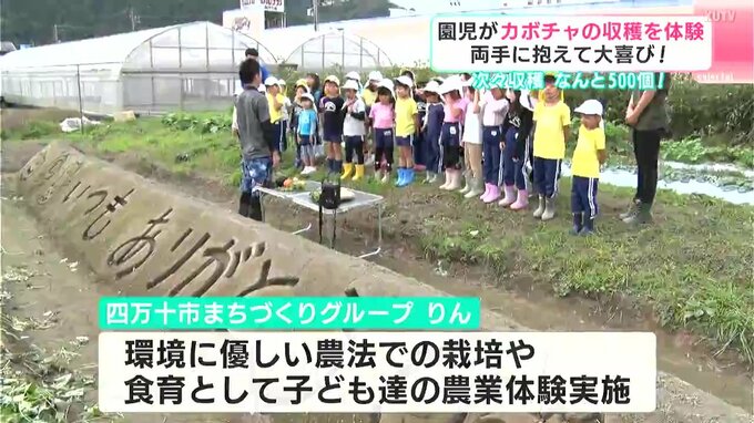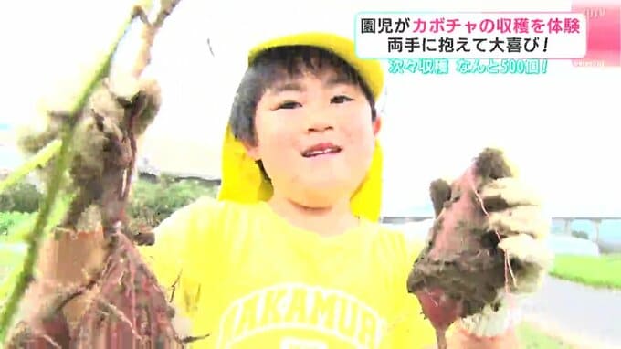 土に触れて農業を体験です。高知県四万十市で、幼稚園児がカボチャやサツマイモを収穫しました。
