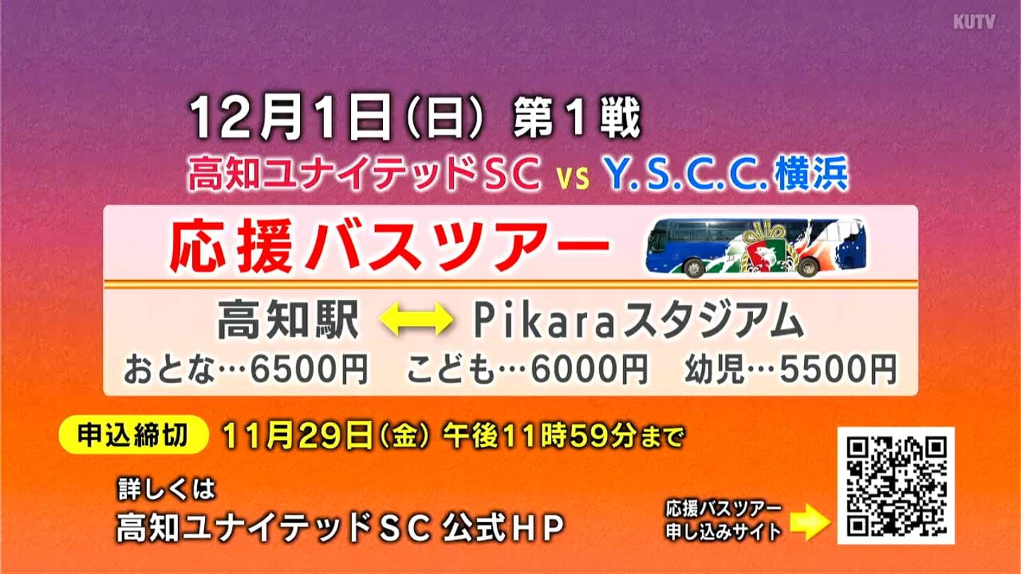 1日の、ユナイテッドがホームの入れ替え戦は、香川県丸亀市の「Pikaraスタジアム」で行われます。当日はJR高知駅を発着する「応援バスツアー」があり、募集人数は135人ですが、予約の状況によっては増便されます。詳しくは高知ユナイテッドSCのホームぺージを確認してください。