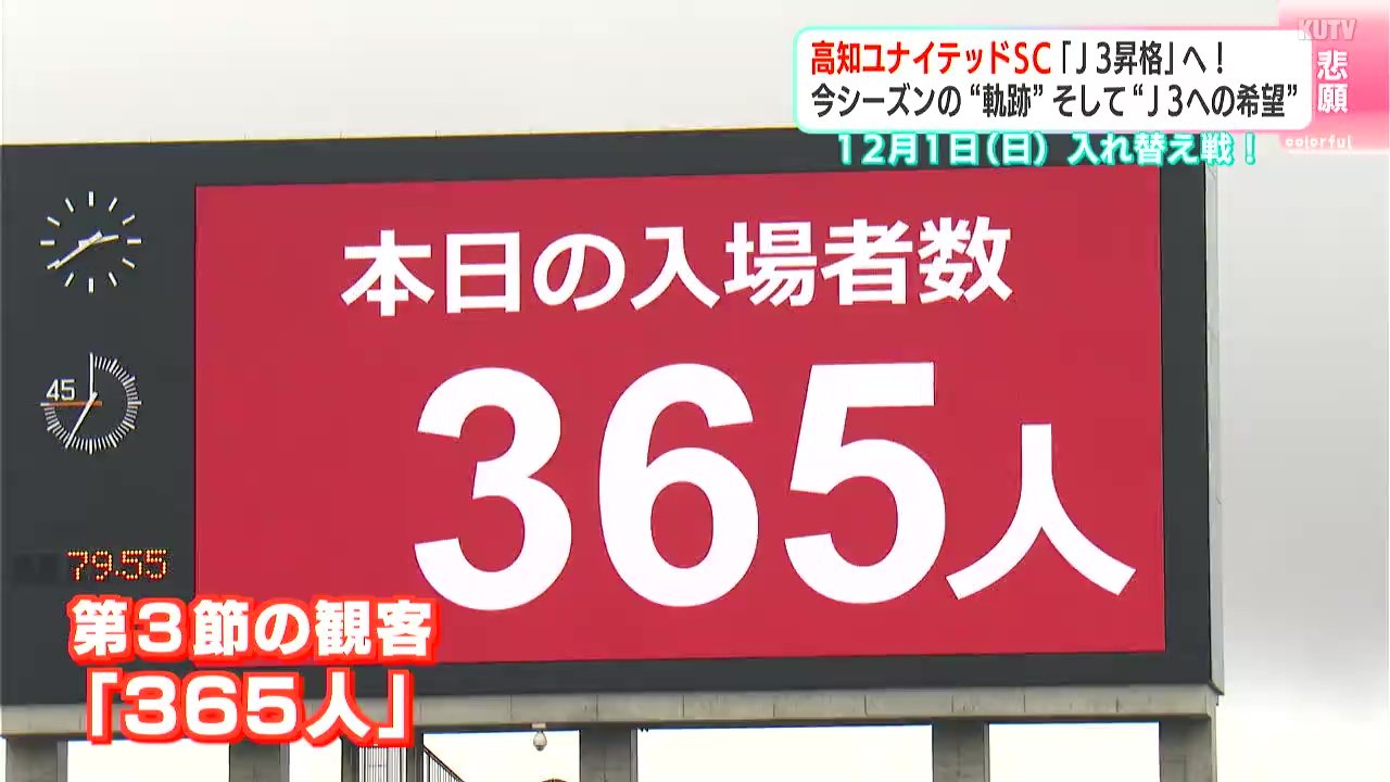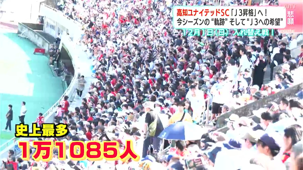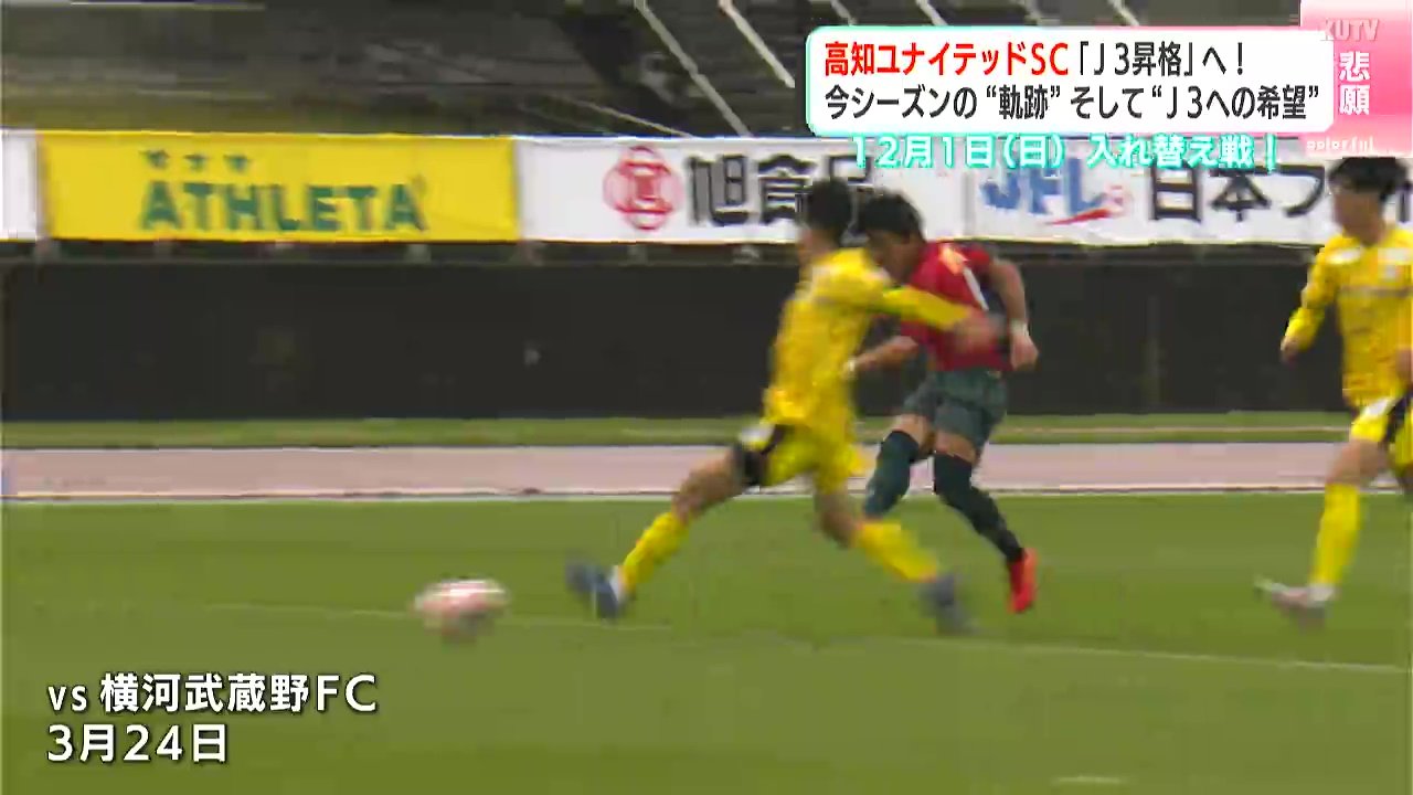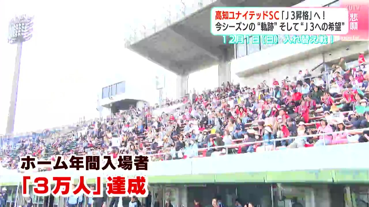 サッカーJFL、高知ユナイテッドSCは、いよいよ今度の日曜日、J3昇格をかけ“入れ替え戦”に臨みます。今シーズンの“軌跡”、そして“J3への希望”を映像にまとめました。