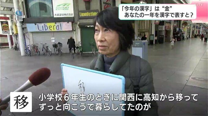 「移動の「移」です、移るです。小学校6年生の時に関西に高知から移ってずっと向こうで暮らしてたのがちょうど今年こっちに帰ってきて暮らし始めたので、いろいろ昔と変わってますし、変わってないところもたくさんあるんですけど印象深いというか感慨深い年でした」