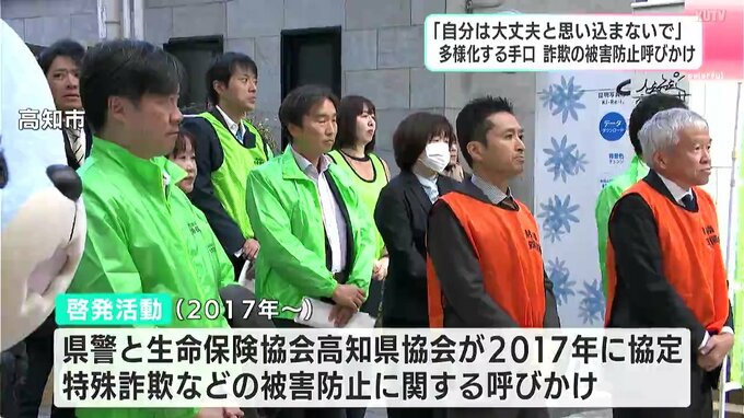 詐欺の手口が多様化し、被害額や被害者の年代が広がっていく中、高知市で生命保険協会の会員らが「誰もが被害にあう可能性がある」と注意を呼びかけました。