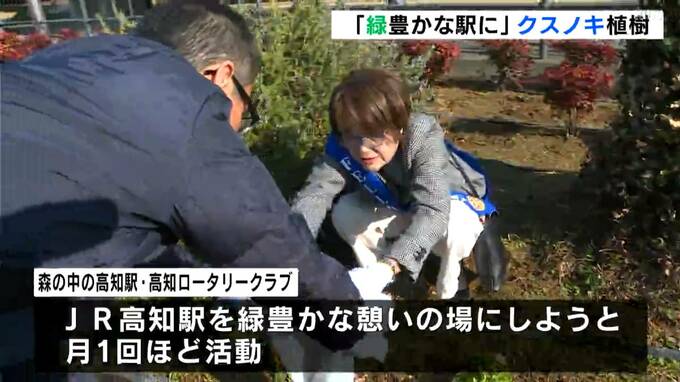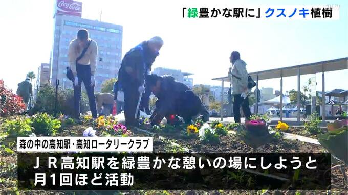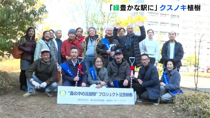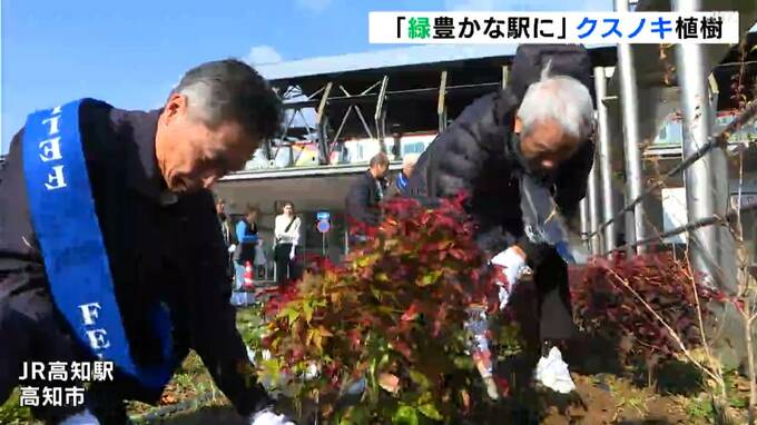 JR高知駅の緑化に取り組むボランティア団体が、結成15周年を記念してクスノキを植樹しました。