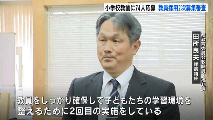 この試験は県教育委員会が今年6月に行った教員採用試験の二次募集で、人員確保につなげようと昨年から実施されています。対象は小学校と電気・電子など高校の工業部門で、小学校には74人が、高校には1人が応募しているということです。