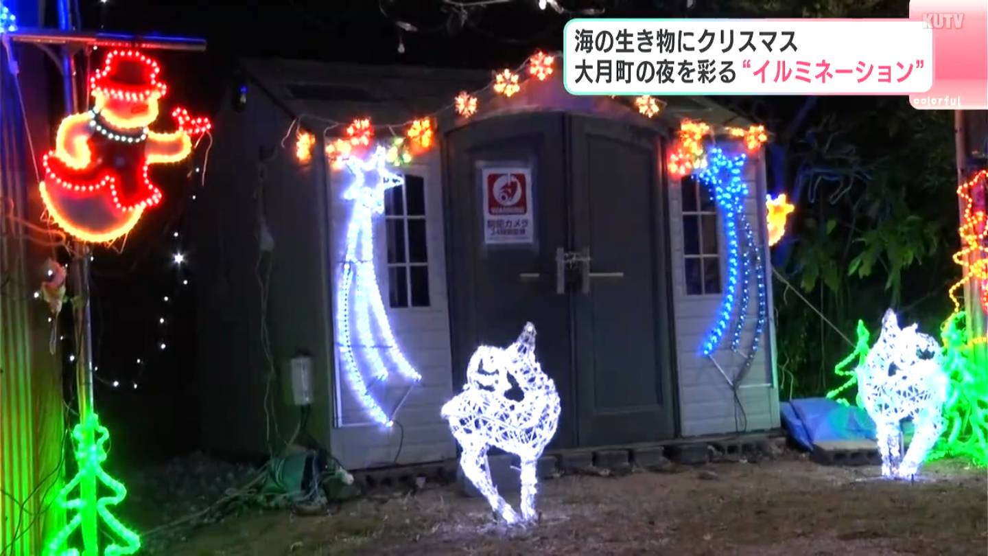 海の生物をかたどった光のオブジェや住民が手作りしたイルミネーションが高知県大月町の夜を彩っています。