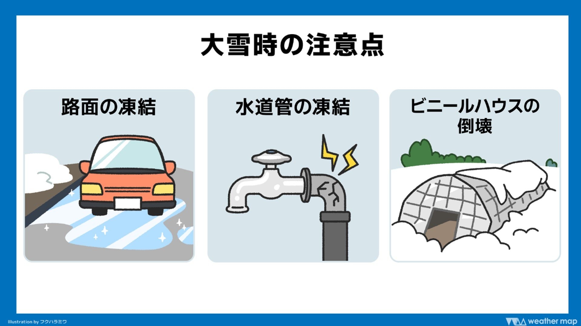 19日の午前6時までに予想される降雪量は、いずれも多い所で平地で2センチ、山地で9センチ。19日午後6時までに予想される24時間降雪量は、平地で3センチ、山地で15センチと、明け方にかけてが雪のピークとなりそうです。山地では特に積雪や道路の凍結、水道管の凍結や農業施設の管理に注意してください。