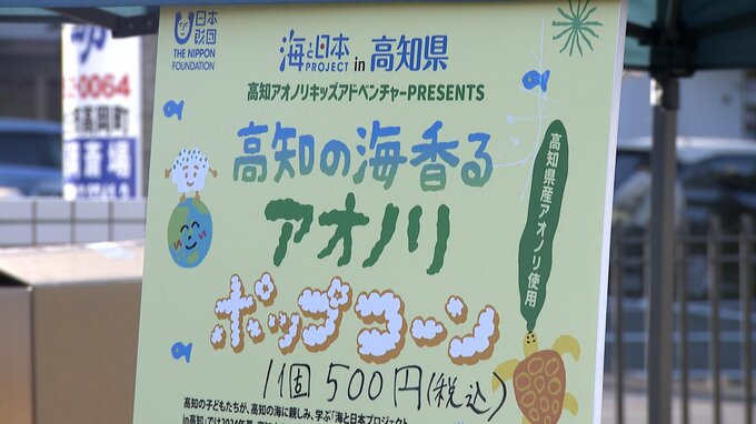 そしてこのほど、アオノリポップコーンが完成。高知海洋高校の文化祭で販売され、訪れた人たちはアオノリや海の環境を守るためなら、とさっそくポップコーンを買い求めていました。子どもたちの思いがこもったアオノリポップコーンは期間限定で土佐市の温泉旅館・三陽荘ほかで販売され、売り上げの一部は、アオノリの研究活動費として寄付される予定です。