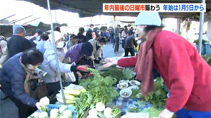 年内最後の日曜市の店頭には、しめ縄や門松といった正月用品や、大根、水菜など冬の野菜が並びました。高知市によりますと、出店数は例年に比べ少なかったものの、大勢の人が正月用品や量販店よりも価格が安い野菜などを買い求め、訪れた人の数は例年より多かったということです。
