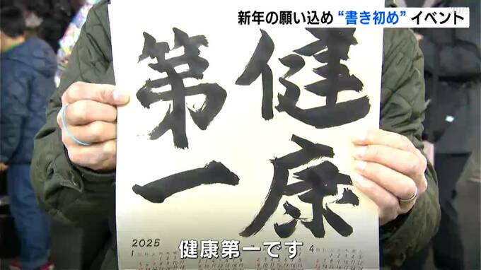 パフォーマンスの後には、一般の人を対象にした書き初めも行われ、訪れた人たちが今年の目標や願いなどを字で表現していました。