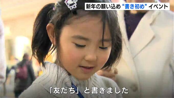 「友だちって書きました。友達がいっぱいできますようにっていう気持ちを込めて書いた。友達といっぱい遊びたい、仲良くなりたい」