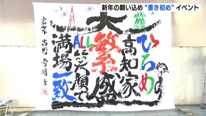 高知市で新年恒例の書道パフォーマンスが行われ、大勢の人が訪れました。