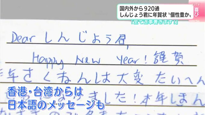 届いたのは、アメリカ、イギリス、香港、台湾、そして日本全国から。香港や台湾から送られた年賀状には、差出人が日本語で書いたメッセージも添えられています。