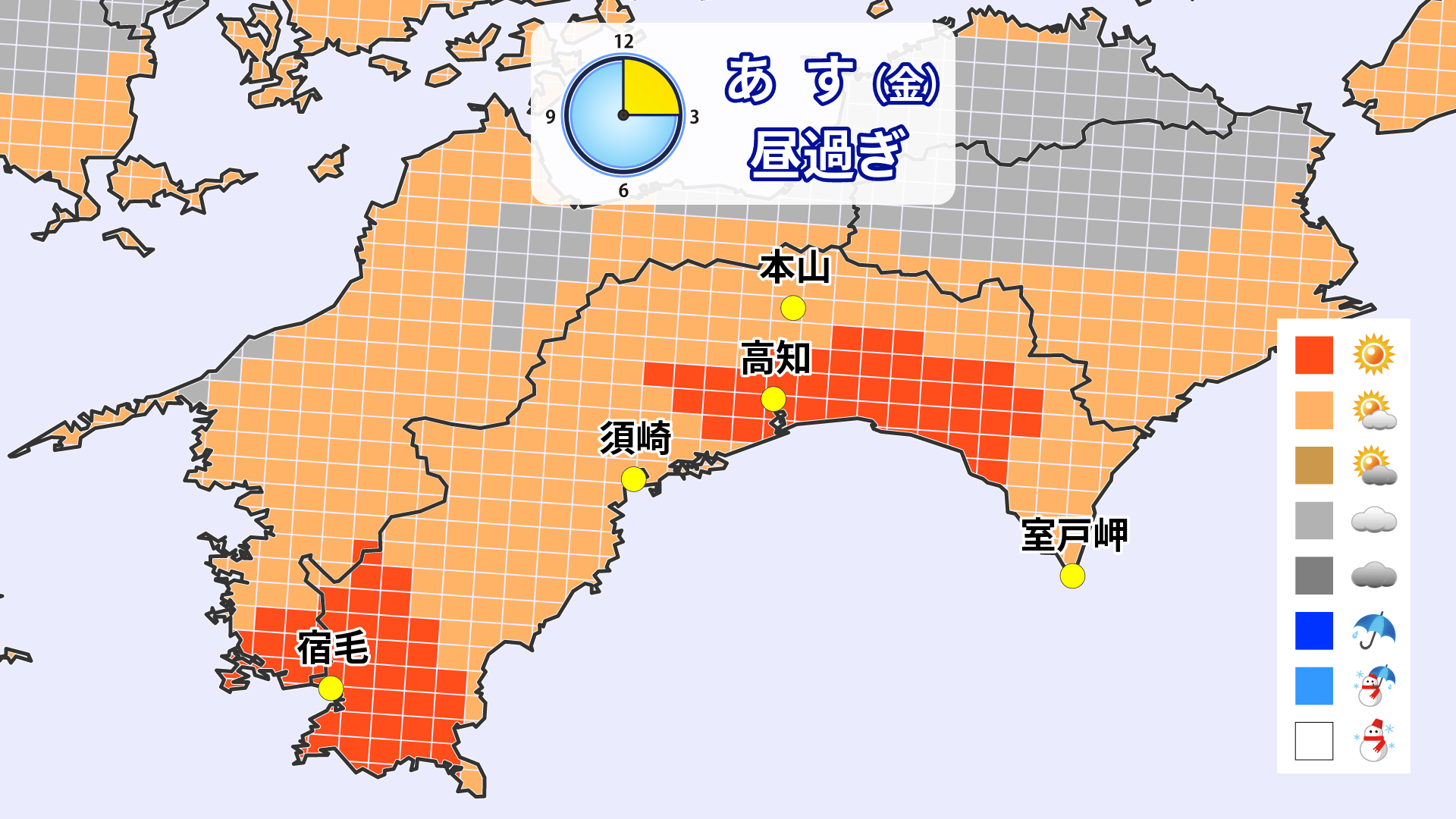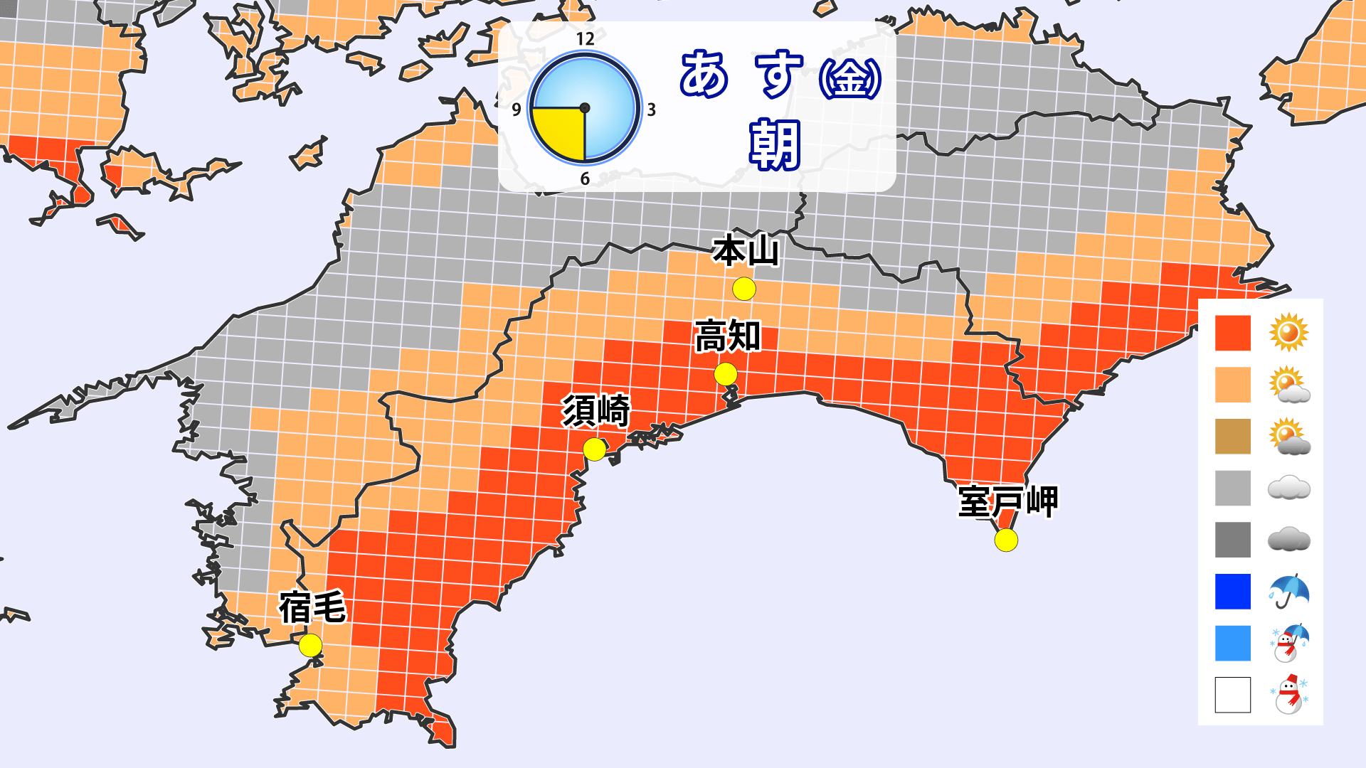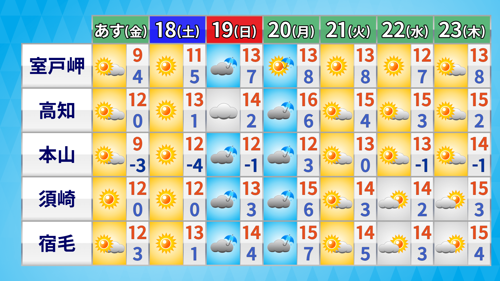 17日の高知県は全域で一日晴れるでしょう。洗濯・お出かけ日和となりそうです。