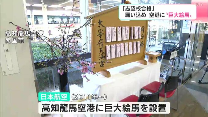 受験生の学業成就などを願おうと、大手航空会社が高知龍馬空港に巨大絵馬を設置しています。
