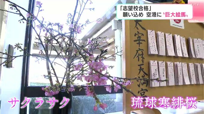 また、絵馬の隣には「サクラサク」という願いを込めて、沖縄から贈られた琉球寒緋桜も飾られています。