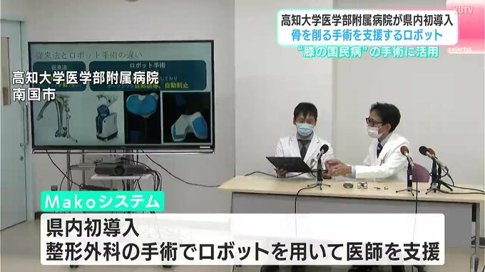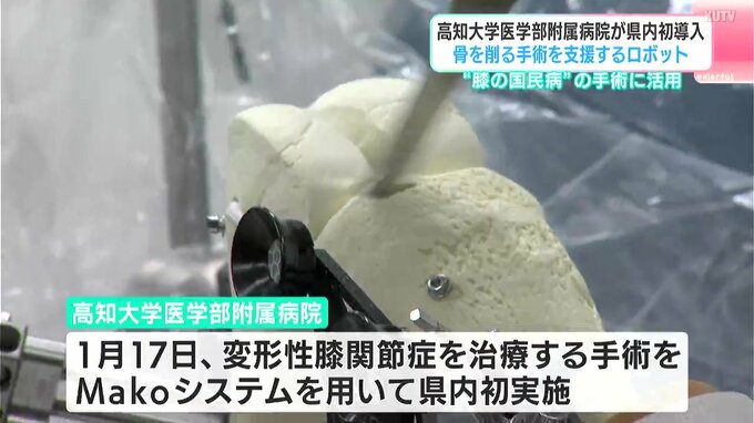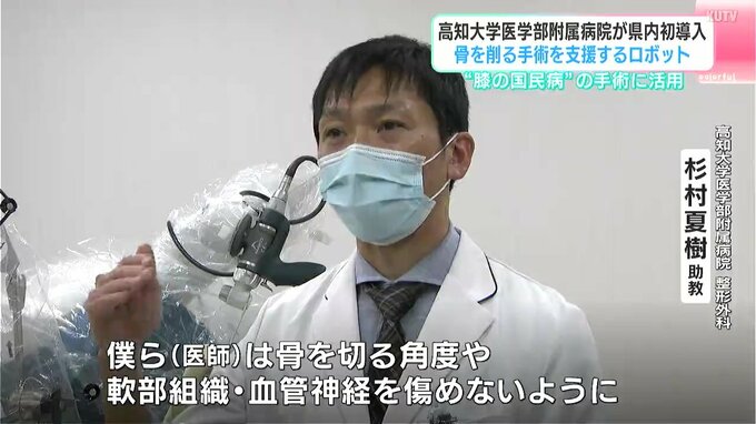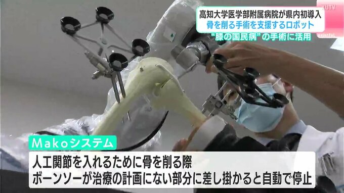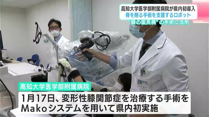 高知大学医学部附属病院では、1月17日、膝の軟骨がすり減り、痛みを伴う変形性膝関節症を治療する手術が、このロボットを使って県内で初めて実施されました。
