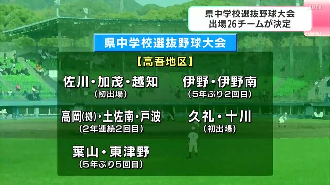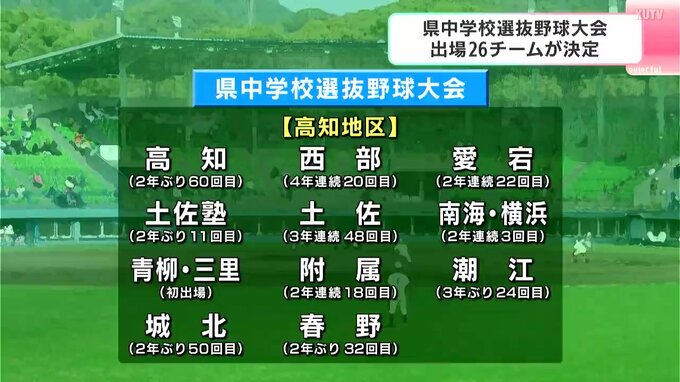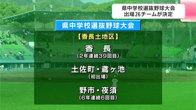 中学球児たちの「春のセンバツ」、高知県中学校選抜野球大会の出場校が決まりました。