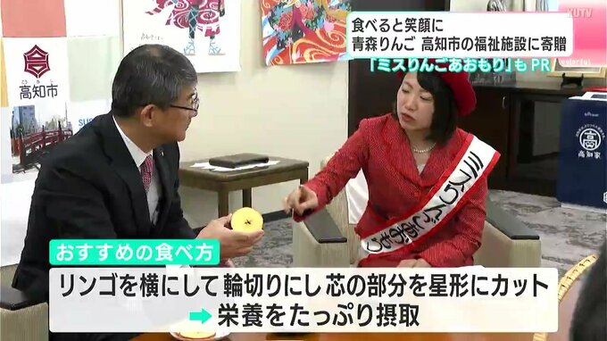 高知県高知市内の福祉施設などに2025年も青森りんごが贈られました。「ミスりんごあおもり」も来高し、おすすめの食べ方を紹介しました。