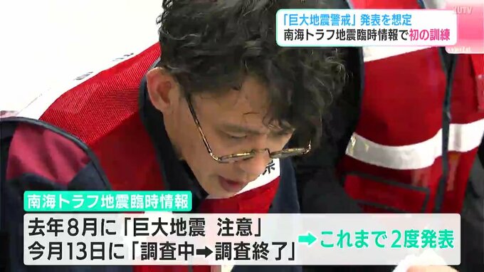 臨時情報「巨大地震警戒」想定の初訓練 過去2度の発表が「職員の動きに繋がった」評価も 安否不明者「氏名公表」の手順も確認 2025年1月28日(火) 18:26 国内 暮らし・マネー 「南海トラフ地震臨時情報」を想定した初めての訓練が高知県庁で行われ、職員が、情報が発表された場合の対応手順を確認しました。訓練は、静岡県沖でM8.1の地震が発生し「臨時情報調査中」が発表されたおよそ3時…